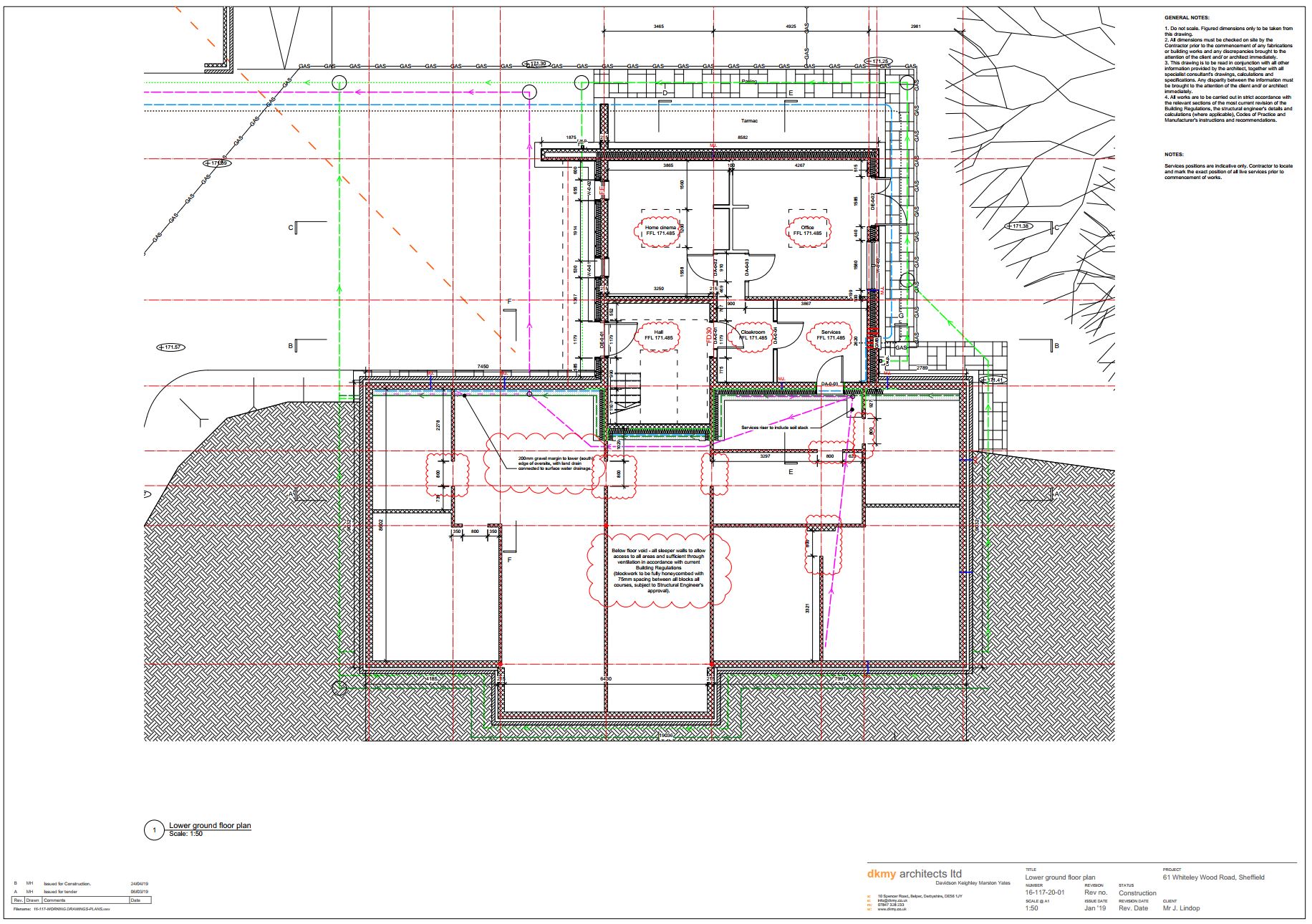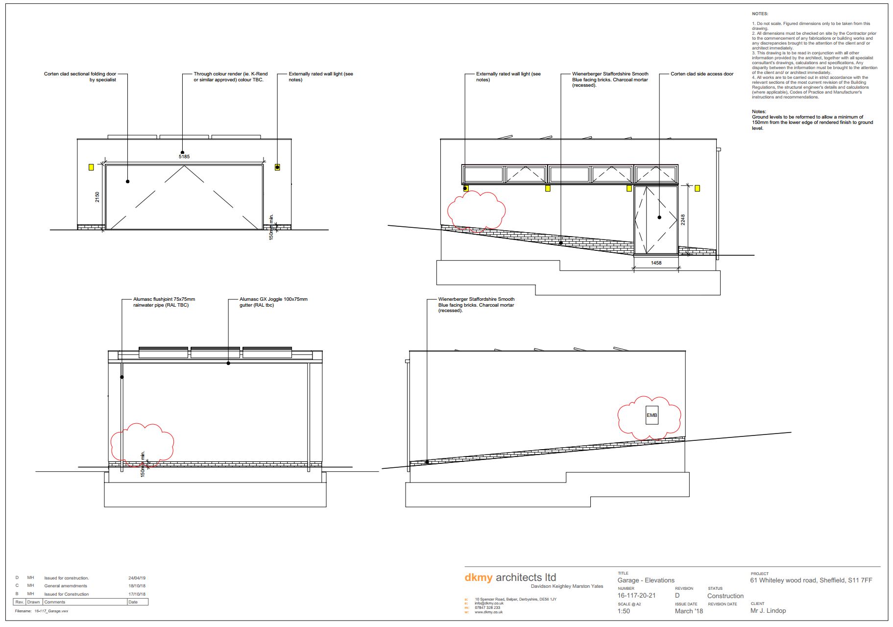 Given my penchant for faffing a 9m x 7m split-level garage is part of the design. Its sited in the NW corner of the plot and will give ample space for toys and work spaces. Its simple in design, matches the house with render and Corten and is provisioned to install solar PV if we go that way.