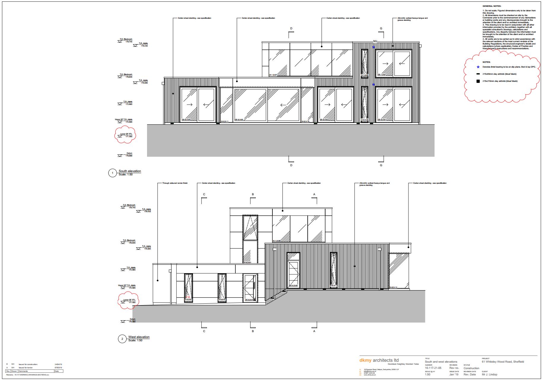 The cladding uses Accoya, a acetylation-modified softwood that is claimed to be the world’s leading long life sustainable wood. It has a natural ageing and long life and some nice detailing should be achieved. We’re big fans of Corten, a steel alloys which forms a stable rust-like appearance after several years exposure to weather. Corten is also a nice homage to the sheffield steel industry ie our hometown. The stairwell is clad in Corten and I’m sure we’ll be making garden planters and other features with it.