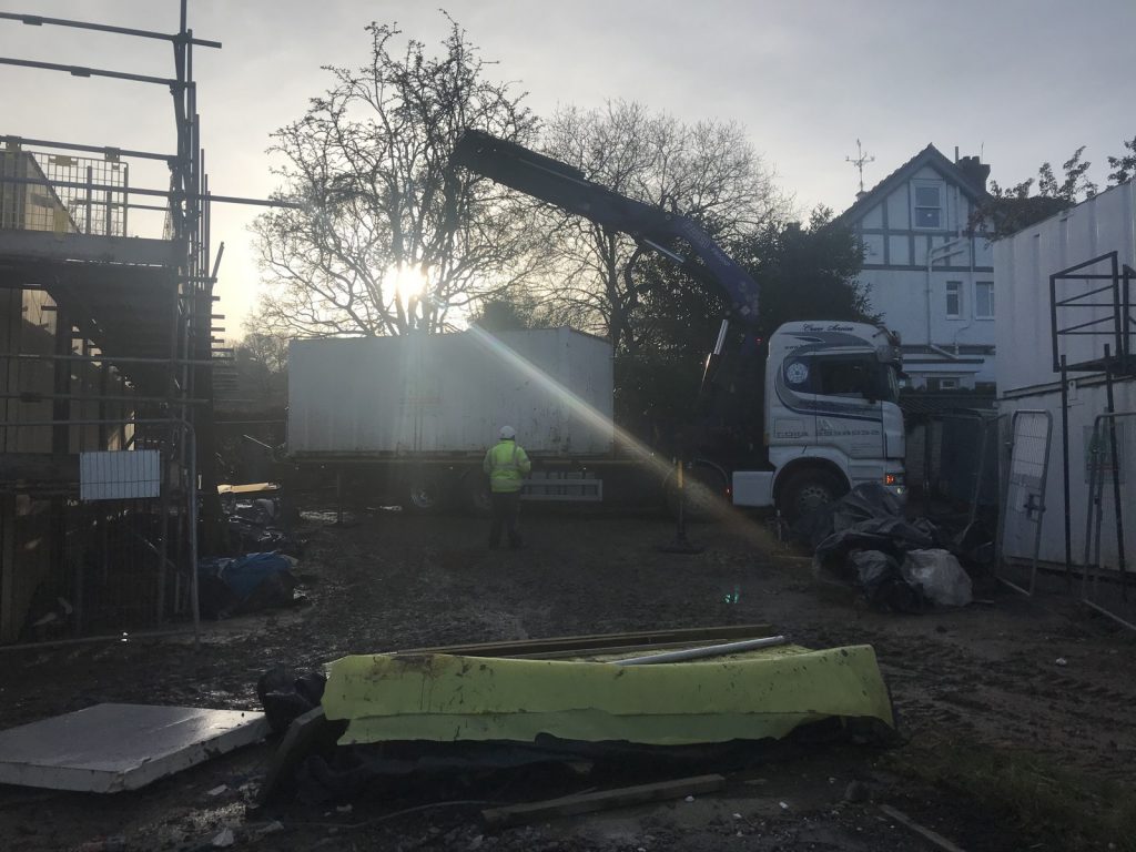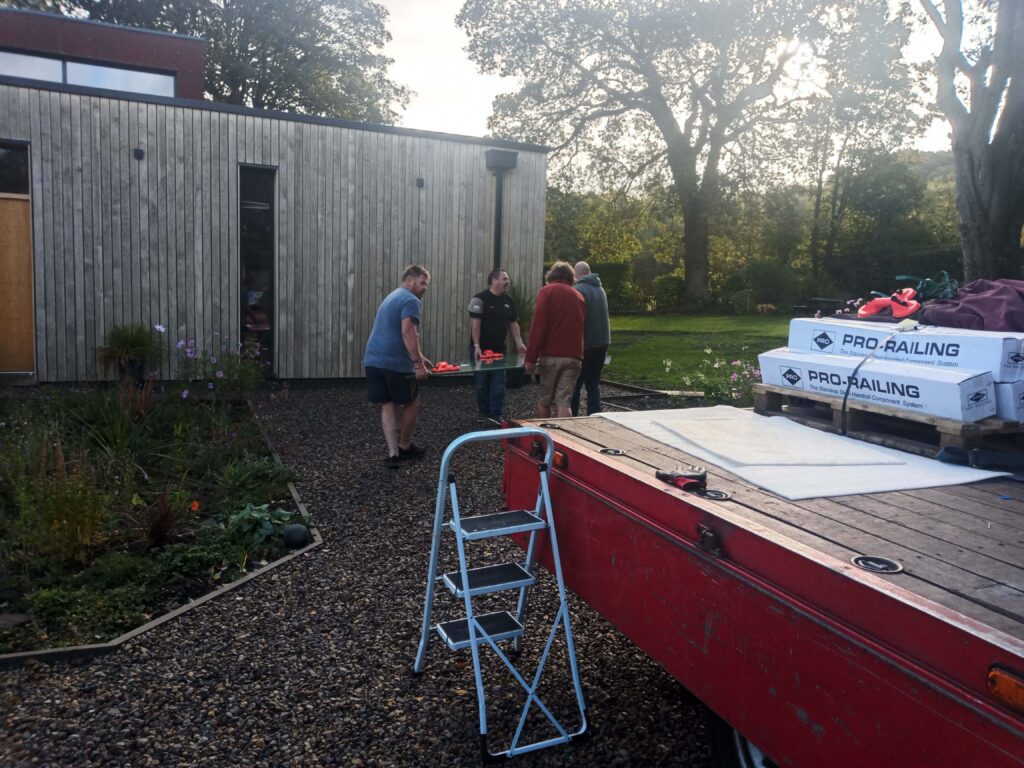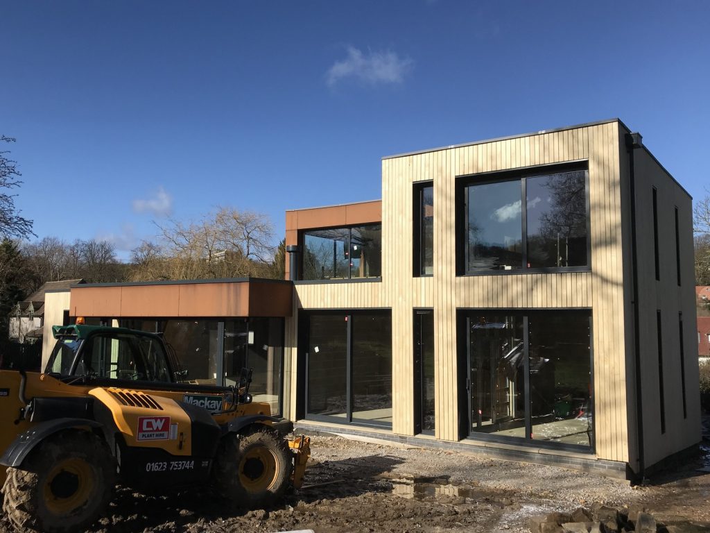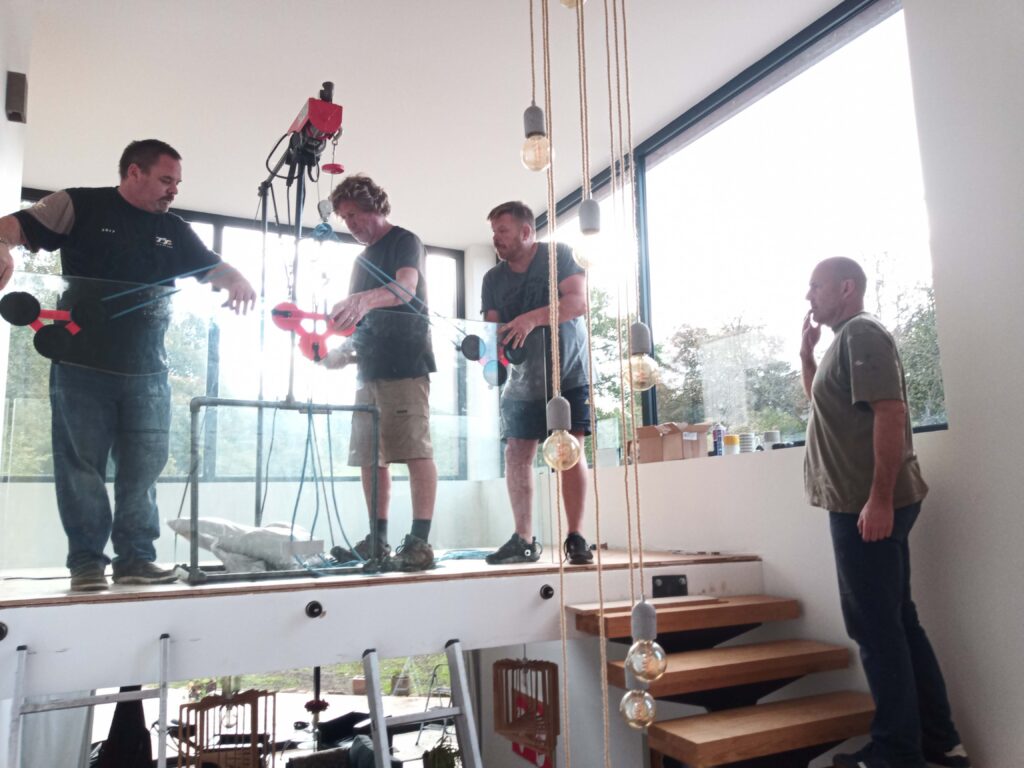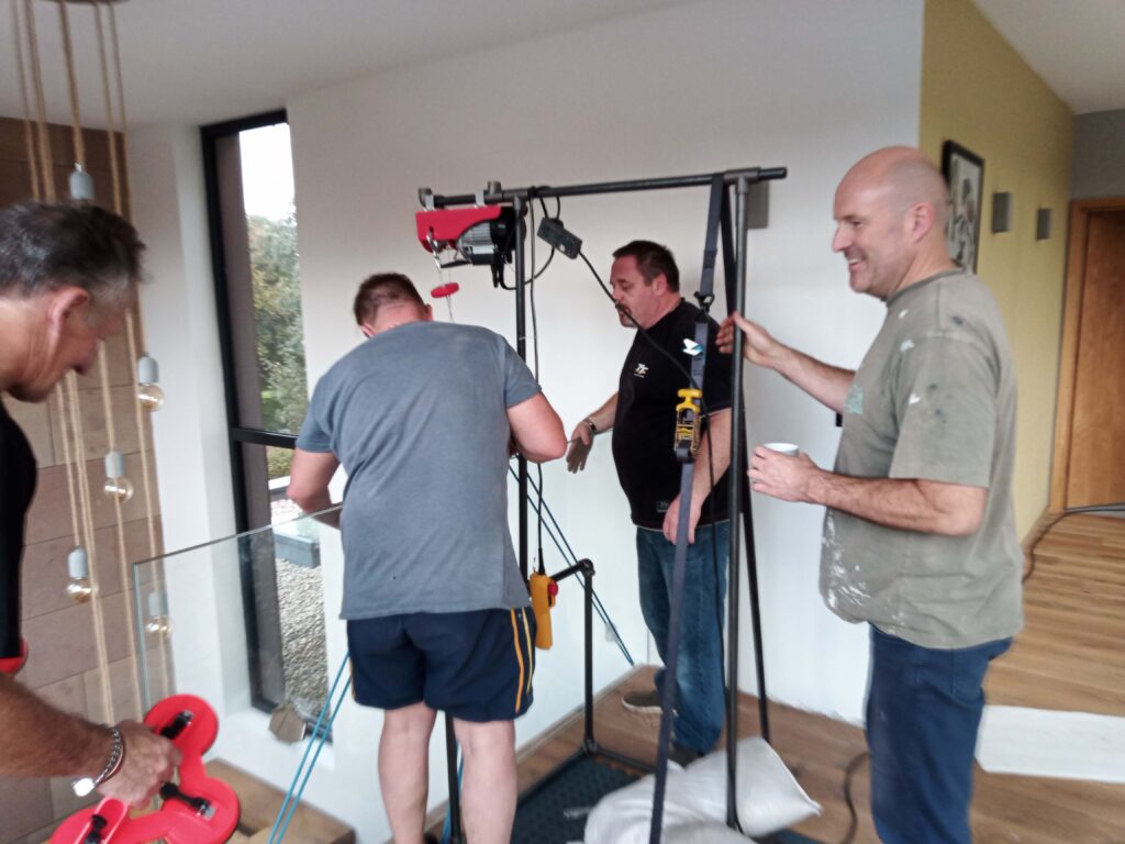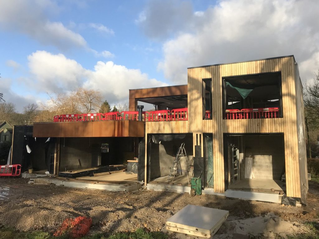 Kompass, the window guys (Steve, Olly, Paul and Will) have been on-site for the past few weeks installing all the windows. 35+ windows and sliding doors installed and we had to hire a telehandler to move some the bigger ones around. The lounge sliding door was over 4sqm, 350kg that took five of us to lift into place .. QSP would have had a dicky-fit with the breach of ‘t elf and safety. I’m dead pleased with them as people and the Reynaers product – Steve is sufficiently chuffed he wants to bring prospective clients around.