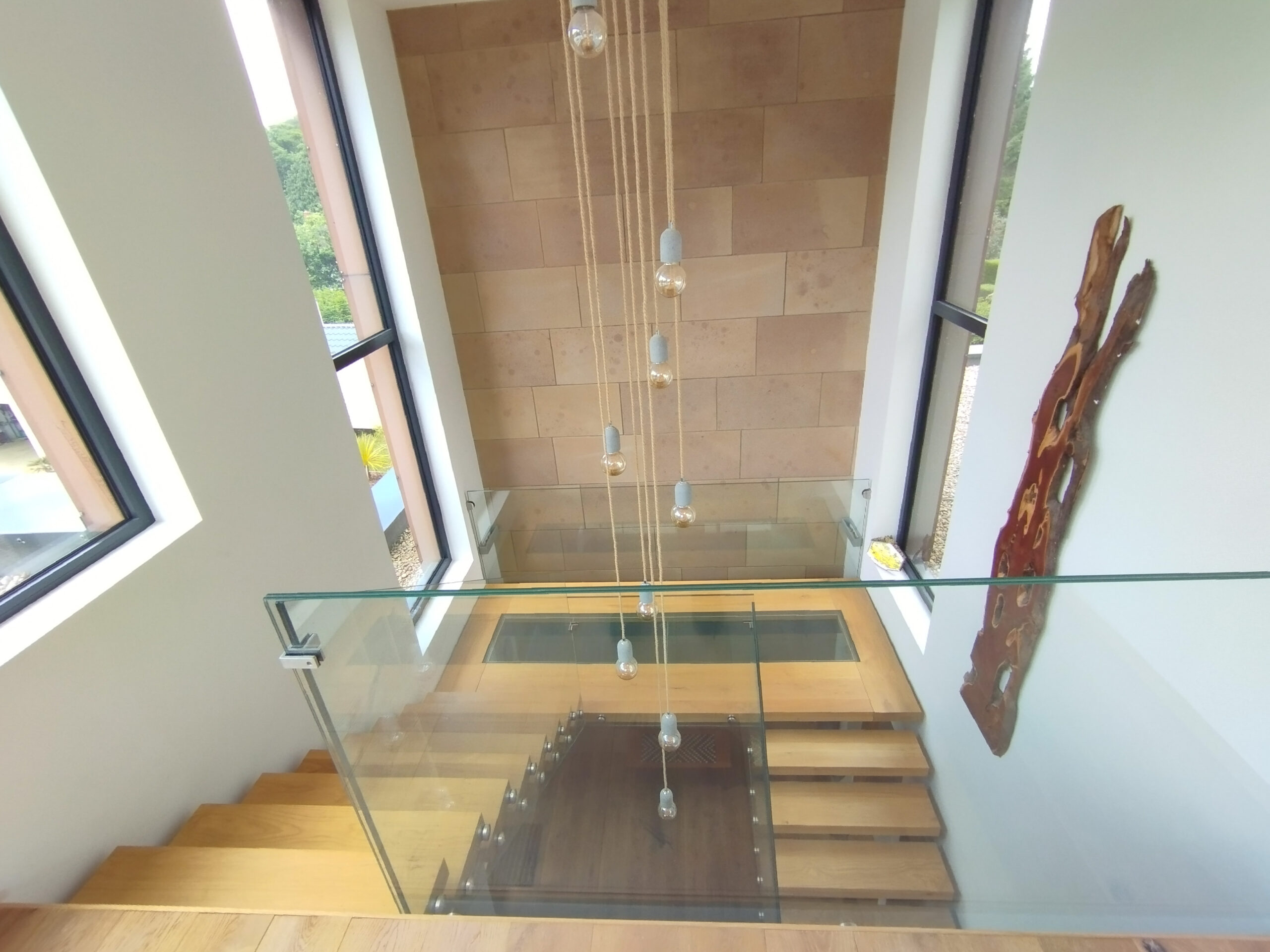 After yet another loonngg time we’ve hit the 2 year anniversary of starting the build of Faffing Towers. This is expected to be the final post although I’ll probably add a few more pics to this post. It was hoping to write this when the house was completed but clearly I was dreaming. We are not far away but the blxxdy staircase has proved to me a stumbling block and the house is still short of all the stair and balcony glass balustrading. The stair oak treads were all fitted over xmas and we then measured up for the glass .. all 9 pieces. It then went very quiet so I chased, it then went very, very quiet and finally Steve admitted he’d not ordered the glass and handed the project over to me. Seven months after starting we still have only 2/3rds of a staircase but, on the plus side, it means I’m faffing away and becoming an expert in glass balustrading: regulations, types, widths, hardware, measurements. It’ll be completed in another 2 months, hence the post today.