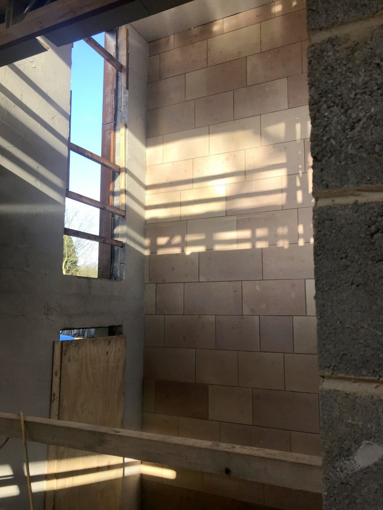 All bar one radiator is fitted and the five heating zones are all working as they should. I was v concerned as I thought I’d made a bollocks (yes, another one) in the design of the heating system as we simply couldn’t get the lounge warm enough – despite the 10kW wood-burner. Without doors we were unsuccessfully heating 2/3rds of the house from the one room. Fortunately with all the doors its a lot better, but I gotta say the house is not as warm as I expected. Thermal mass and insulation is all very good but when the inside of the house is cold it takes time and energy to warm it up. We’re learning but maybe my antipathy to underfloor heating was unfair.