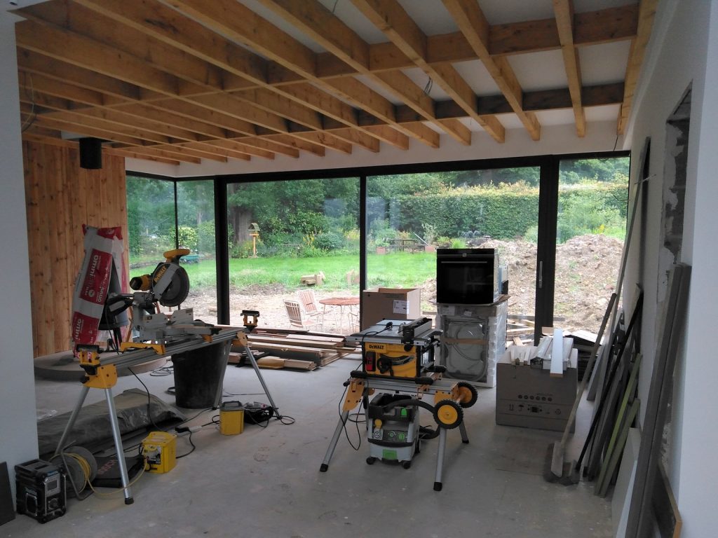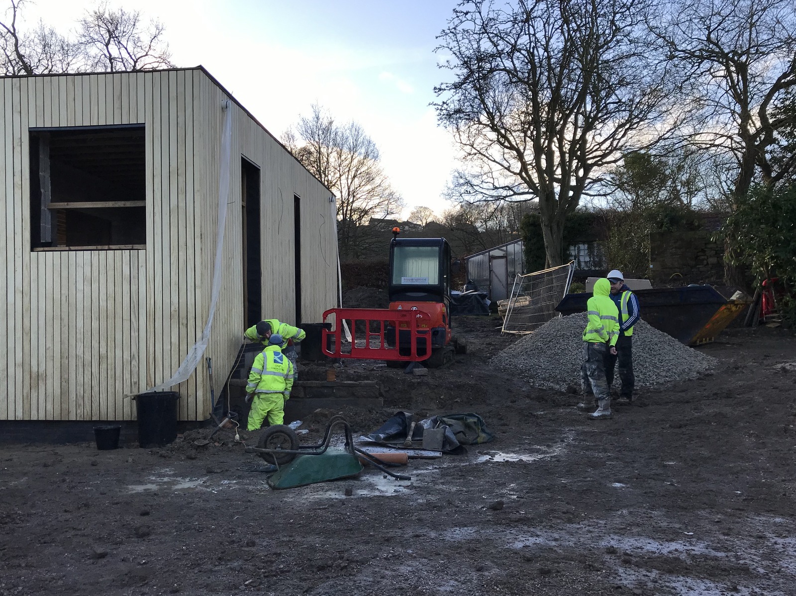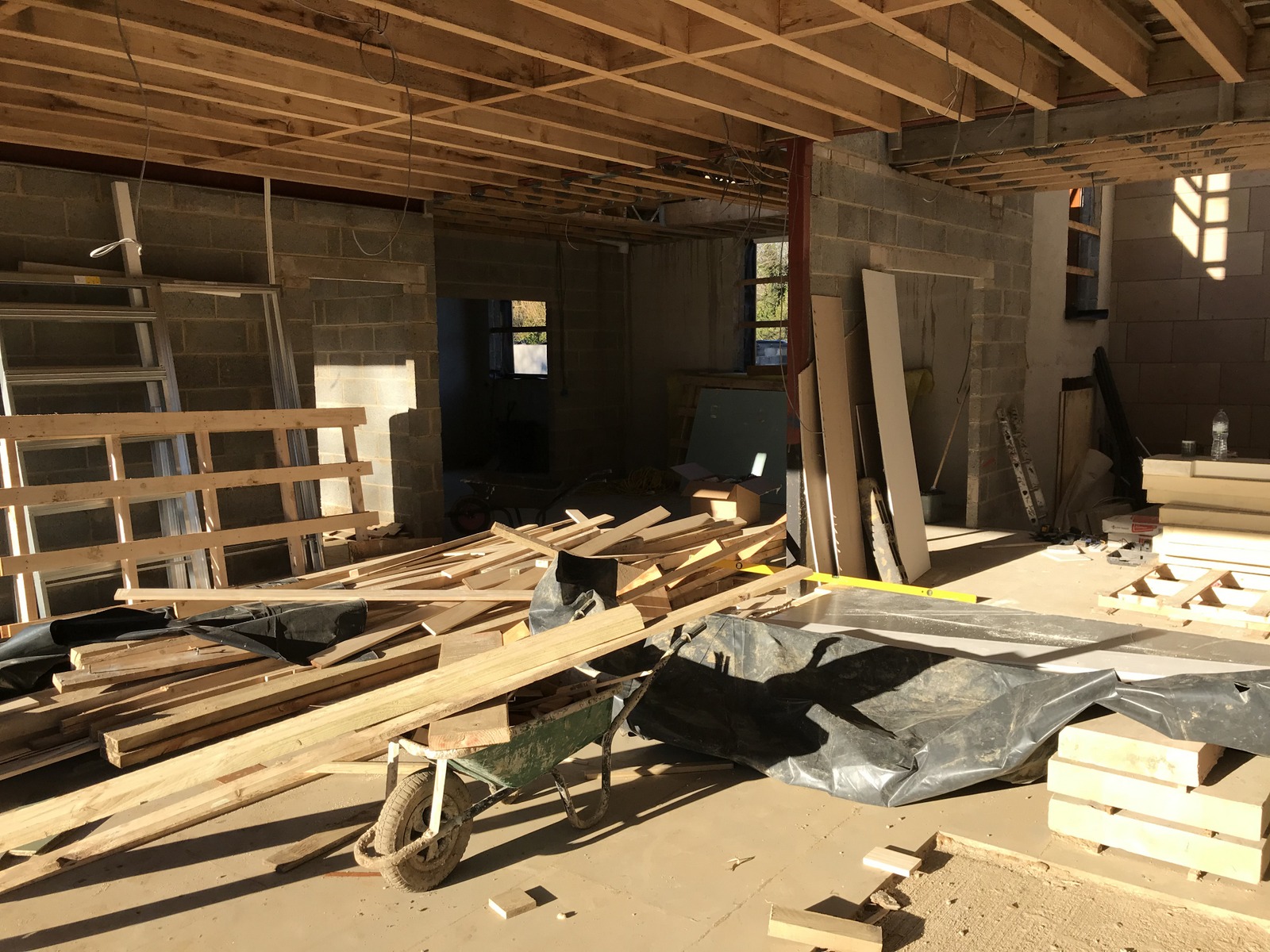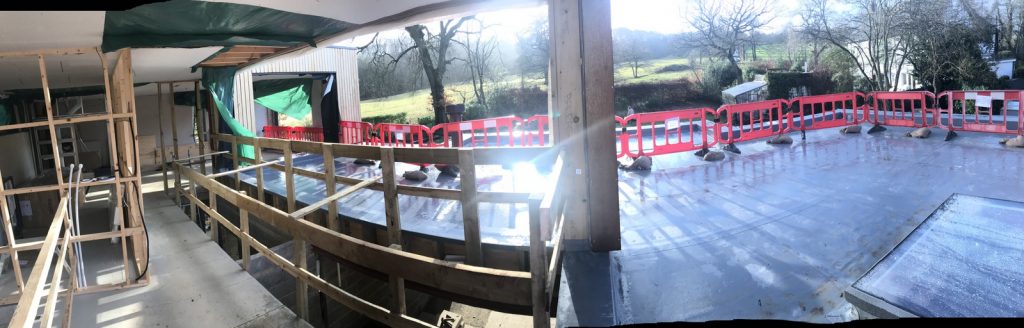 Four weeks have gone by and, despite the ongoing weather, great progress has been made. There are two reasons for this – firstly QSP and their subcontractors: roofers, joiners, groundworkers got on with the work in hand and secondly I went away, couldn’t interfere and left them to it.