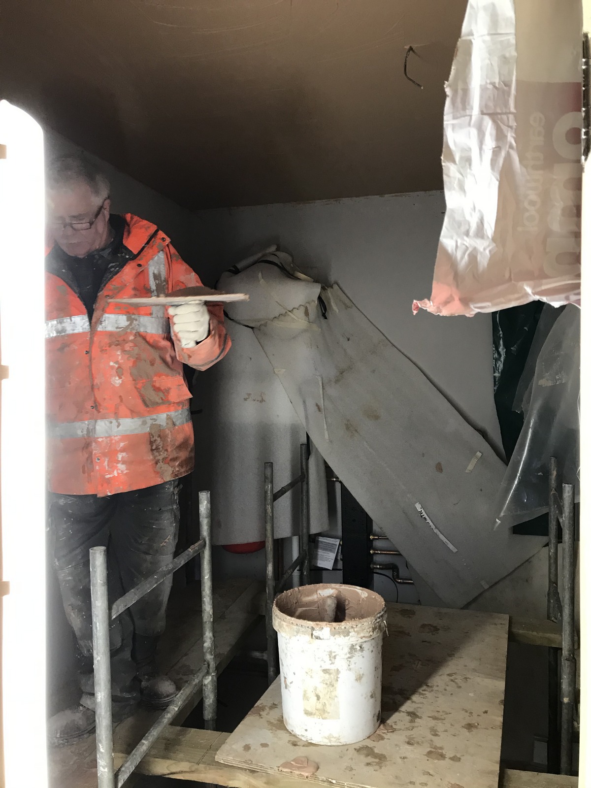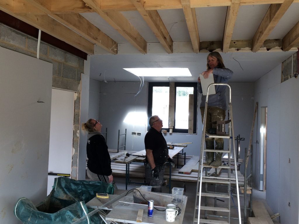Phil, Dan, Chris and Mel are plugging away over the weekends boarding and plastering. We have the first floor rooms plastered and maybe a third of the ground floor boarded out.