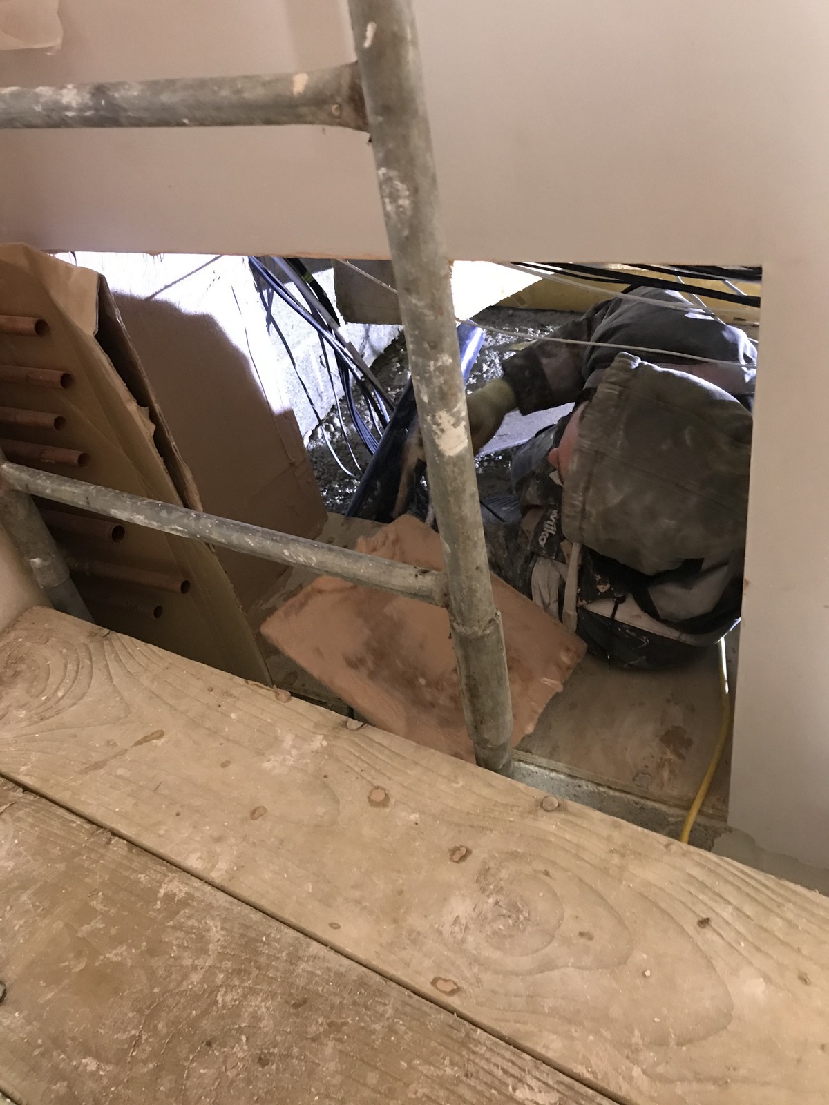 What a surprise, we’ve had another month of shite weather, a few big storms and possibly the worst flooding the UK has ever experienced. Fortunately it hasn’t caused too many problems as a lot of the work is now inside. We’ve had regular minor floods in the LGF which we put down to the windows not being in, but ironically the worst flood was the day after the windows went in during storm Dennis when we had ~2″ of water throughout the ground floor. After a big cleanup we started flooding 2 days later .. which was good as we got to the root of the problem with faults with a downpipe, a stream running down the side of the house and water coming through the services ducting .. which QSP has now sealed up. Coming days will tell whether we are watertight.