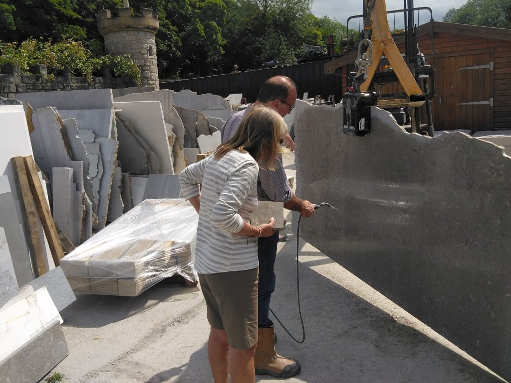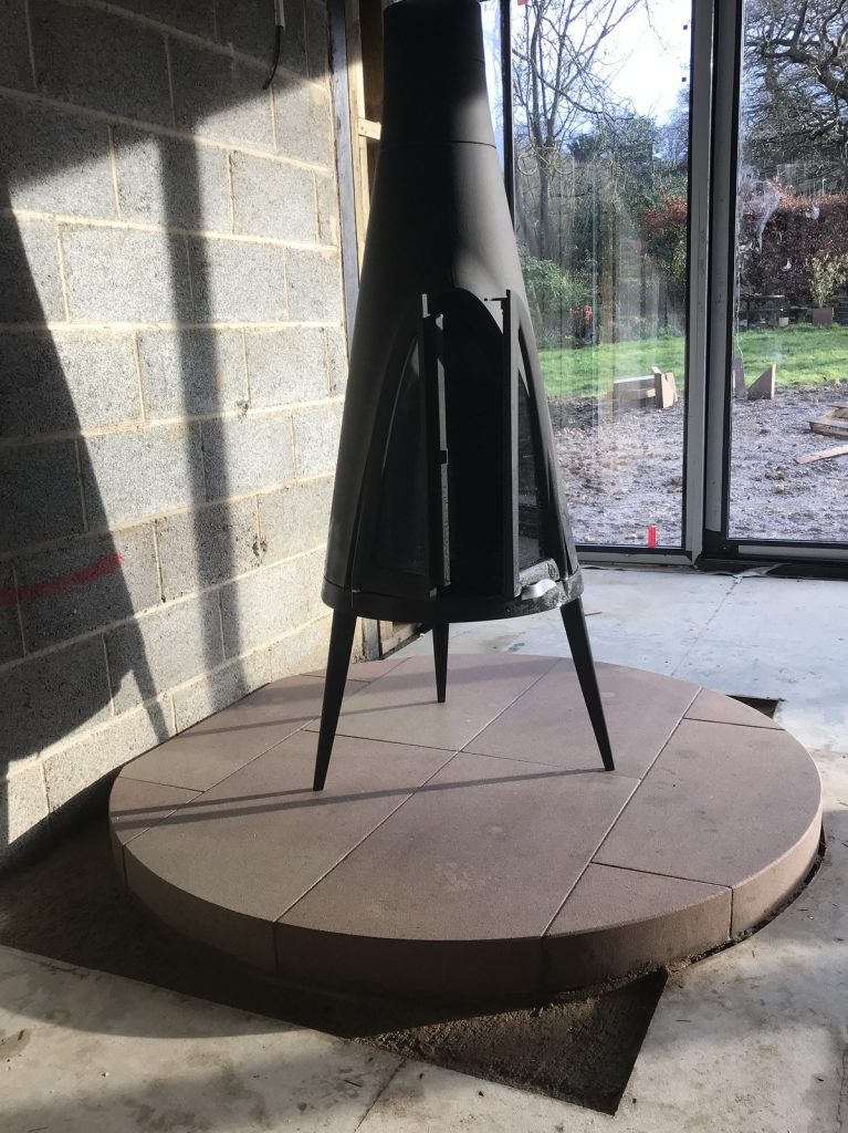 The ashlar hearthstones have been cut by Hope stonemasons (Greenstone and Ivy) and been laid byPhil/myself. The fire is sitting there waiting for James to connect up (next week).