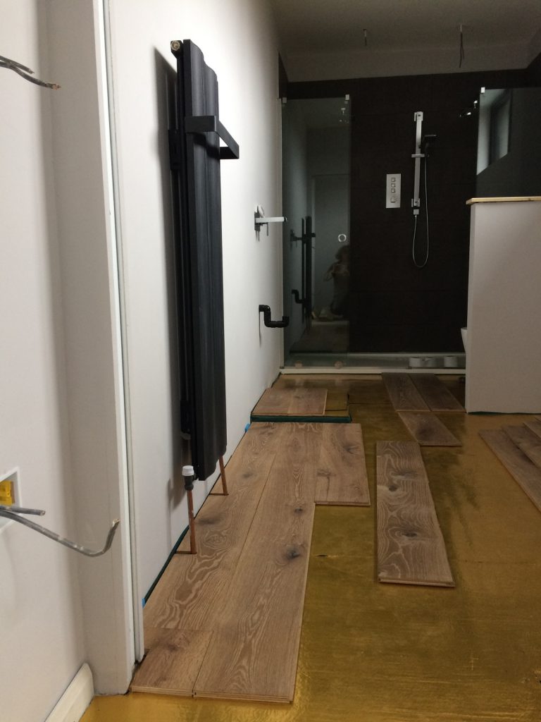 The wood flooring has been put down in the utility/kitchen, snug and living area, some 50sqm.
