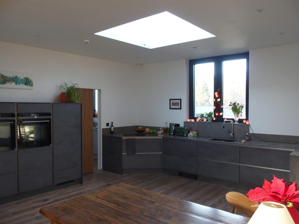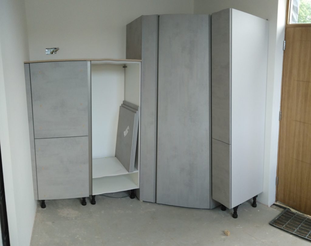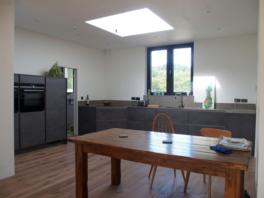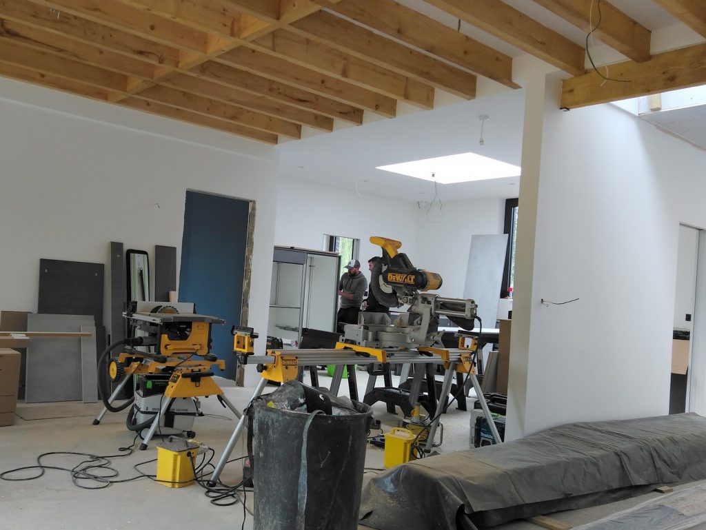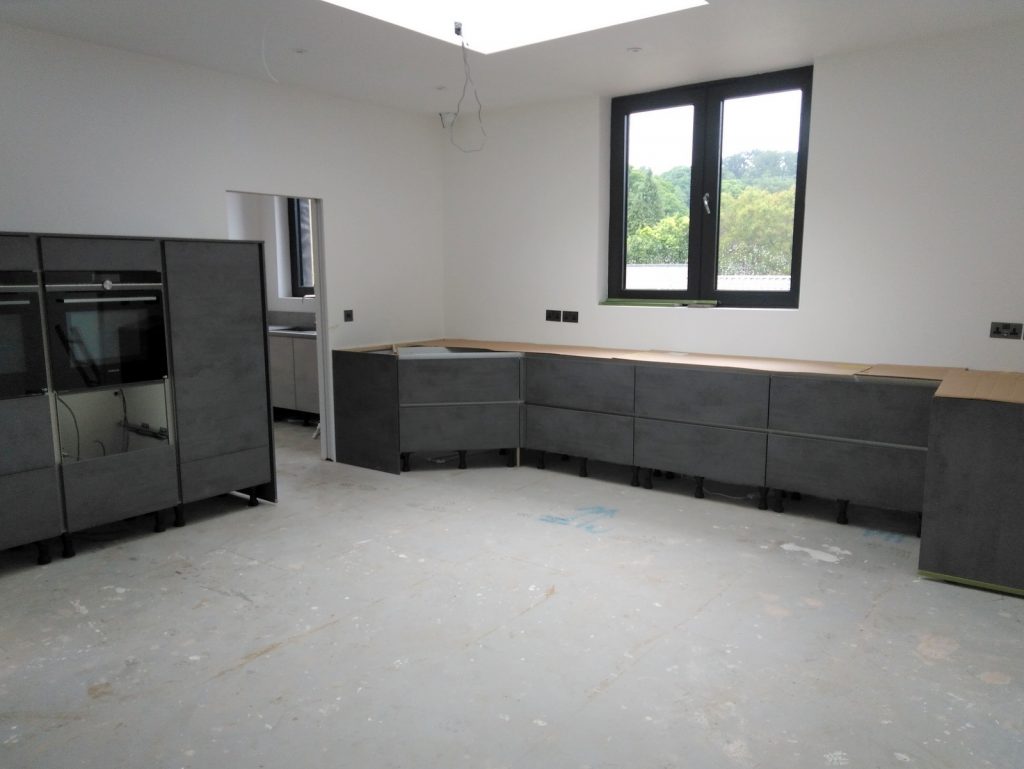 During lockdown by chance we talked to Ryan at Square kitchens who came up with a lovely design, good cost and started fitting the kitchen and util rooms in July. I was immediately re-appointed as a sparkie as most of my first fix of elecs were in the wrong place. Kitchen/Utility now await the flooring.