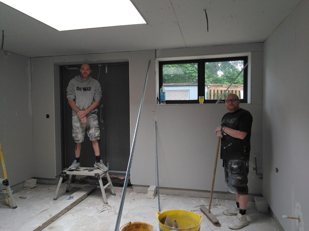 Andy and James found the odd day over the weeks to finish all the electrics in both the house and the garage. All done, with only a couple of problems where cables were unconnected, one being due to the plasterers leaving it inside the wall and the other we are none the wiser.