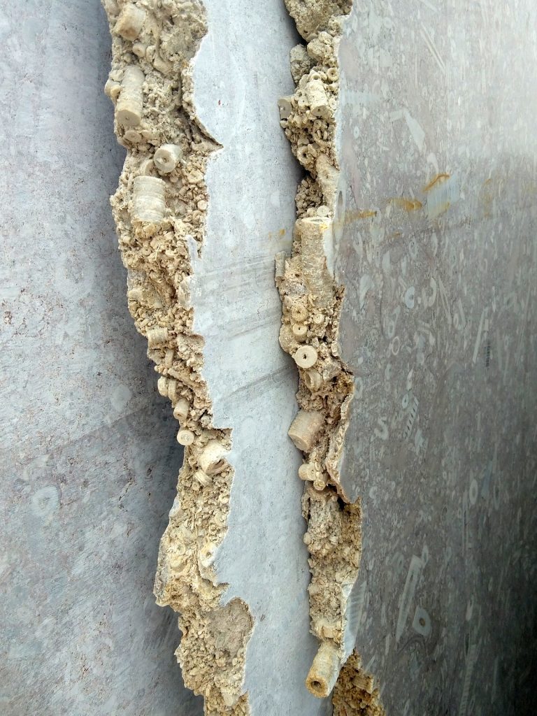 The Kitchen fossilised worktop from Mandale quarry has been installed. An indulgence and it looks a treat, including a sharks tooth embedded in the worktop. With Andy wiring up and myself finishing the plumbing its now all running. ‘t modern kitchen technology has moved on. Venting hob, a dishwasher ! and I can turn the oven on with my phone (er, wow).