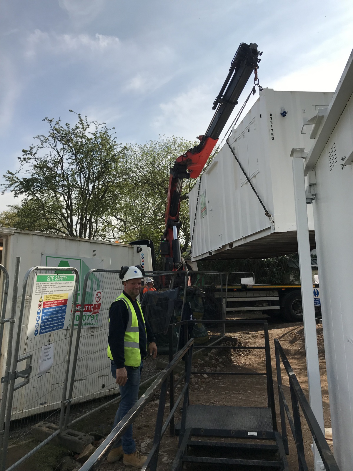 The cabins arrived tues/wed, we now have a toilet block – mens and ladies, a canteen/drying room – if folk get wet on a day they’d better have dry clothes for the next els not much will happen, and a site office on top of the canteen. I connected the water up pretty easily, although the hose-pipes swell worryingly when a couple-bar go through them. The electricity was another matter. Each cabin has a 32A plug and the canteen has two good heaters, a water heater, a kettle and microwave – potentially this lot can suck 100A which is the limit of the property supply. 16mm armoured cable (112A) to junction box (100A) to 3 (32A) cabin feeds. Gawd help the elec bill.
